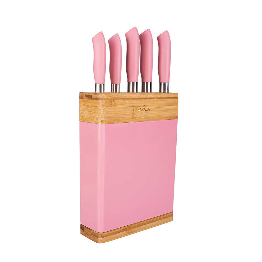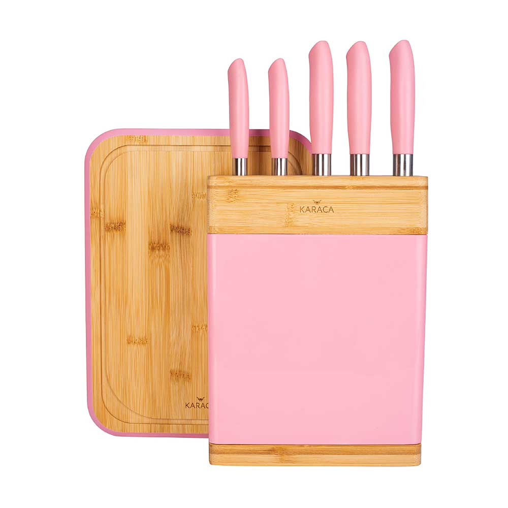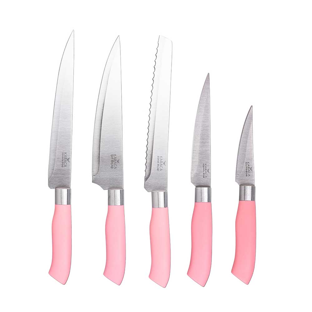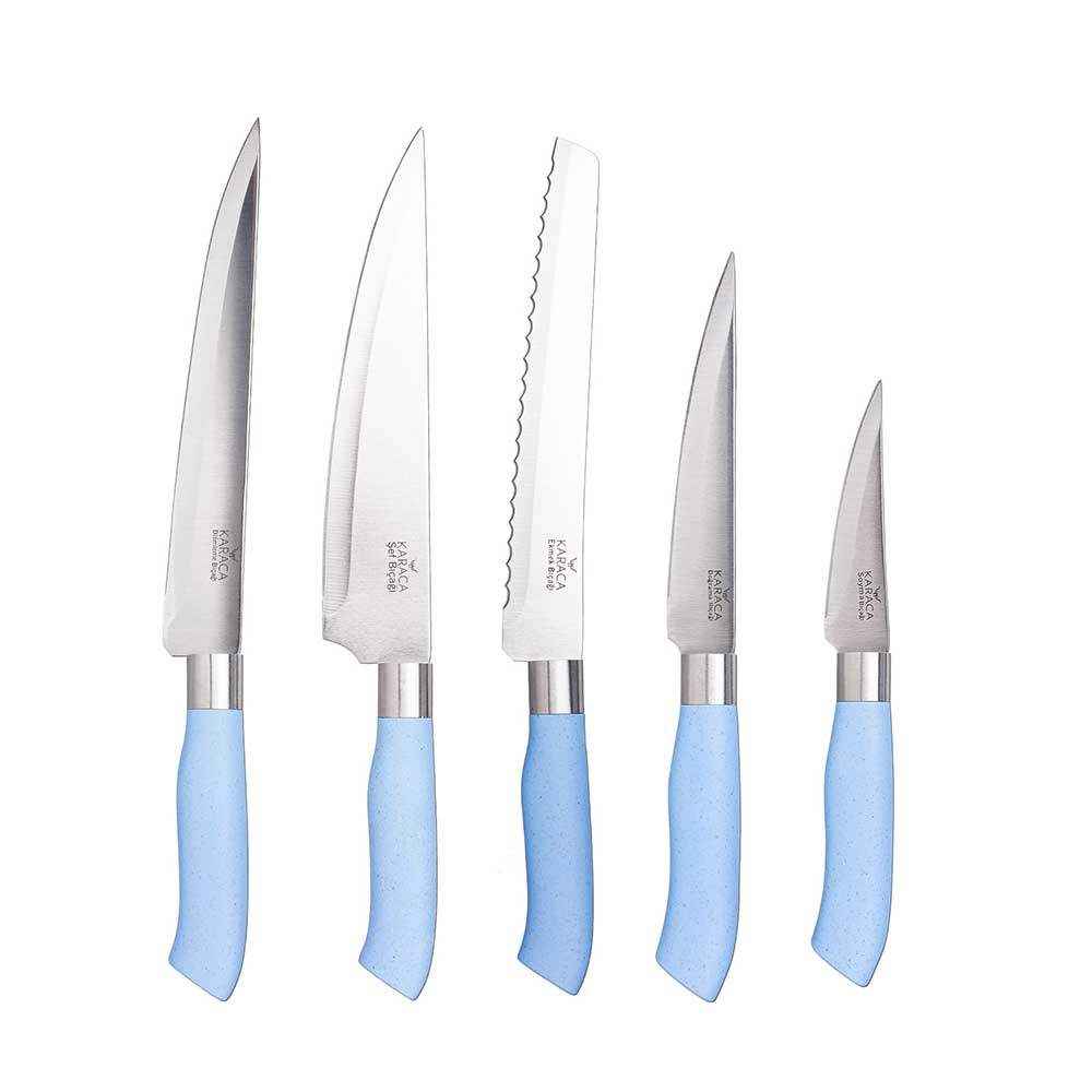 شامل: چاقو برش نان، چاقو برش دادن، چاقو سرآشپز، چاقو پوست کندن، چاقو خرد کردن، استند، تخته برش