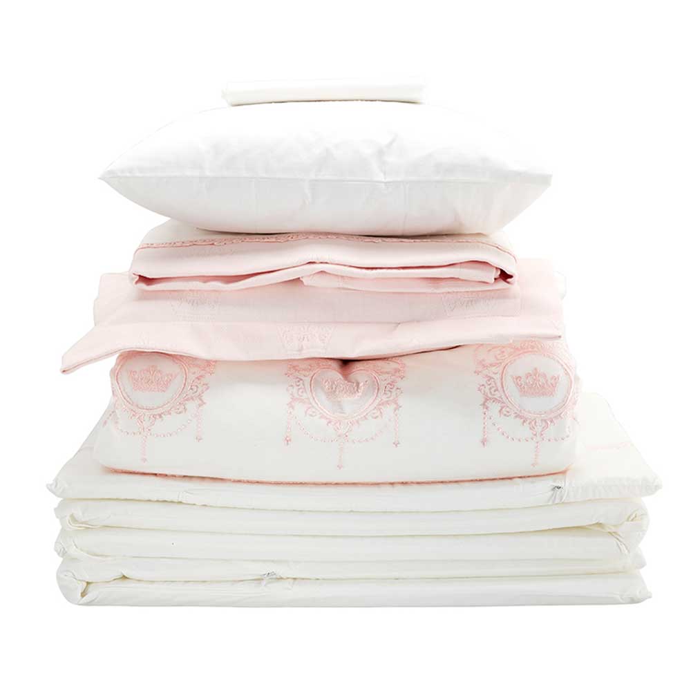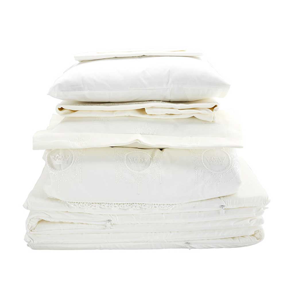 شامل: کاور لحاف گلدوزی شده، ملحفه، روبالشی ساده، روبالشی گلدوزی شده، دور تختی گلدوزی شده (2 عدد)
